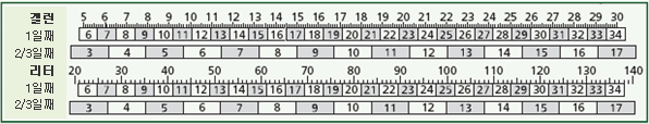 2. ¼öÁ¶ºÎÇÇ¿¡ ÇØ´çÇÏ´Â ¿ë·®À» ´«±ÝÀÚ(µµ·®Çü ´ÜÀ§)¿¡¼ ã´Â´Ù. 1ÀÏ, 2ÀÏ, 3Àϰ¿¡ Åõ¾àÇÏ´Â ¹æ¿ï¼ö¸¦ ã´Â´Ù. ÁÖÀÇ: 2ÀÏ, 3Àϰ Åõ¾àÇÏ´Â ¿ë·®Àº °°´Ù.