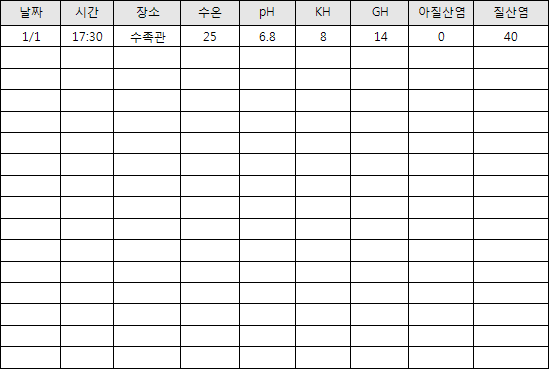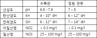 »êµµ(pH), °æµµ(KH¿Í GH), ±×¸®°í ºÐÇØ¿ä¼Ò(NO2°ú NO3).